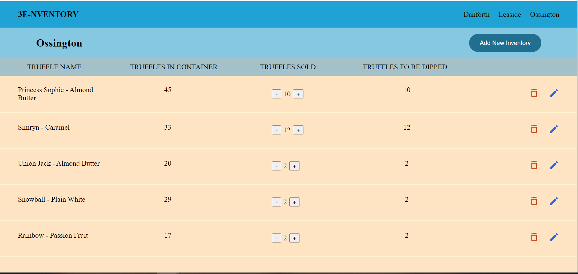 3E-nventory is an easy, efficient and elegant inventory tracking system. This application is created for a chocolate shop running 3 stores. This application was my capstone project for my web development bootcamp.